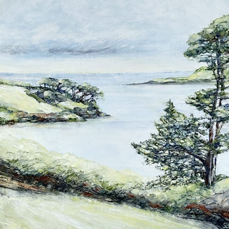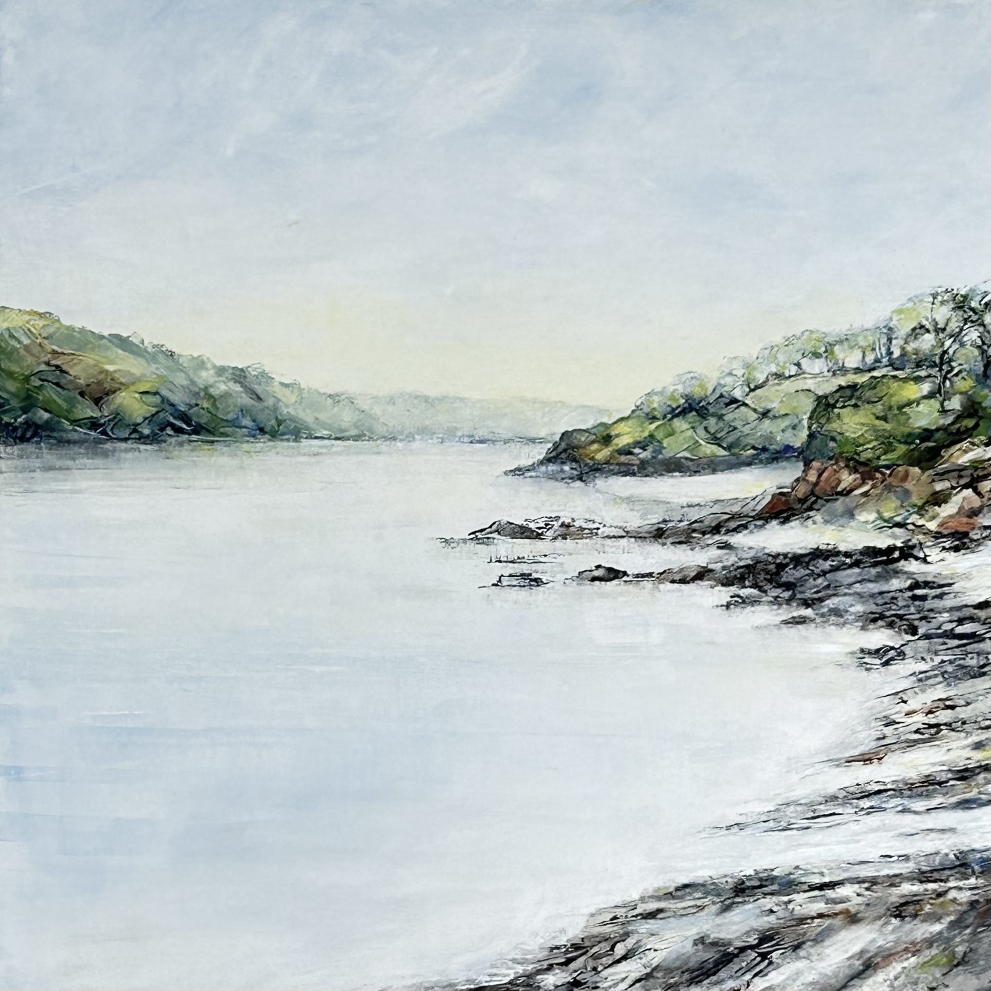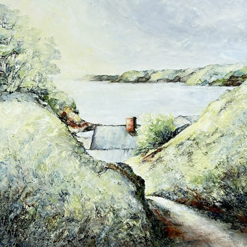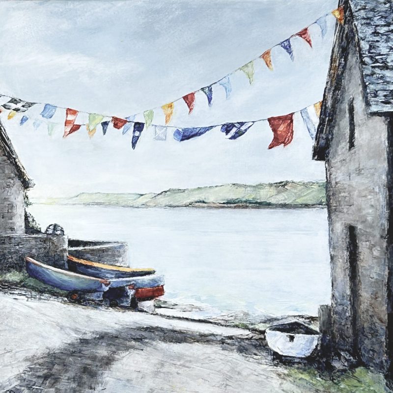Original paintings are almost all framed oils on wood panels. There are a few on board behind glass, shown here in mounts. But do come to see the real pictures if you can – especially as the latest ones incorporate cold wax into the oil paint. Photos can’t show the extra depth of colour and texture.